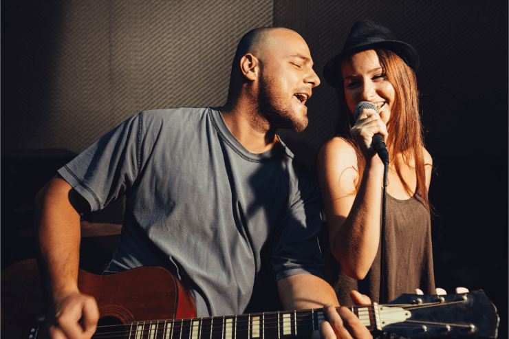 Instrumentos: voz + bateria + baixo + guitarra ou piano